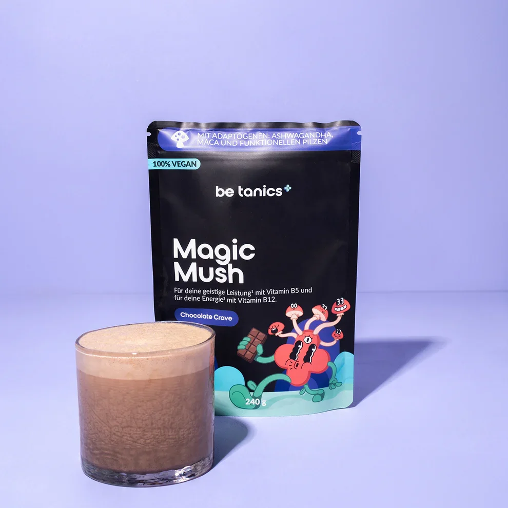 Die Produkte sind rein pflanzlich und vegan. Bisher sind keine Nebenwirkungen bekannt. Einige sehr empfindliche Personen könnten in den ersten Tagen leicht entgiftende Effekte spüren (z. B. vermehrte Hautunreinheiten durch Detox) – das pendelt sich aber schnell ein. Da Magic Mush natürliches Kakao-Koffein enthält (sehr gering), können extrem koffeinsensitive Menschen das Getränk ggf. etwas früher am Abend nehmen. Bei Schwangerschaft oder schweren Erkrankungen frage im Zweifel deinen Arzt. Grundsätzlich sind die Inhaltsstoffe aber in für Erwachsene unbedenklichen Dosierungen formuliert.